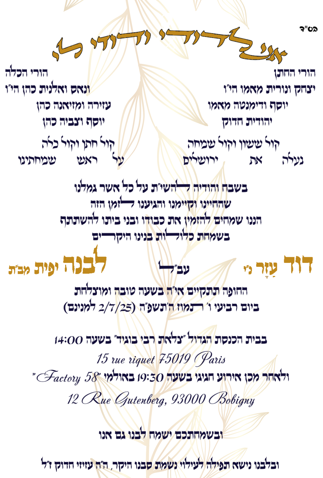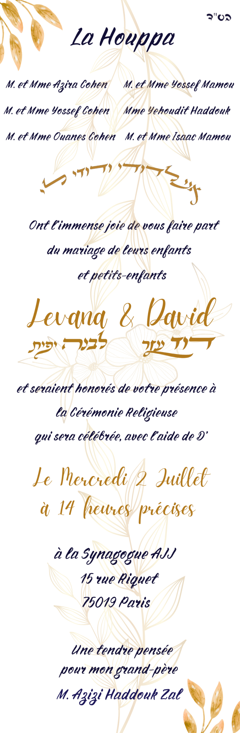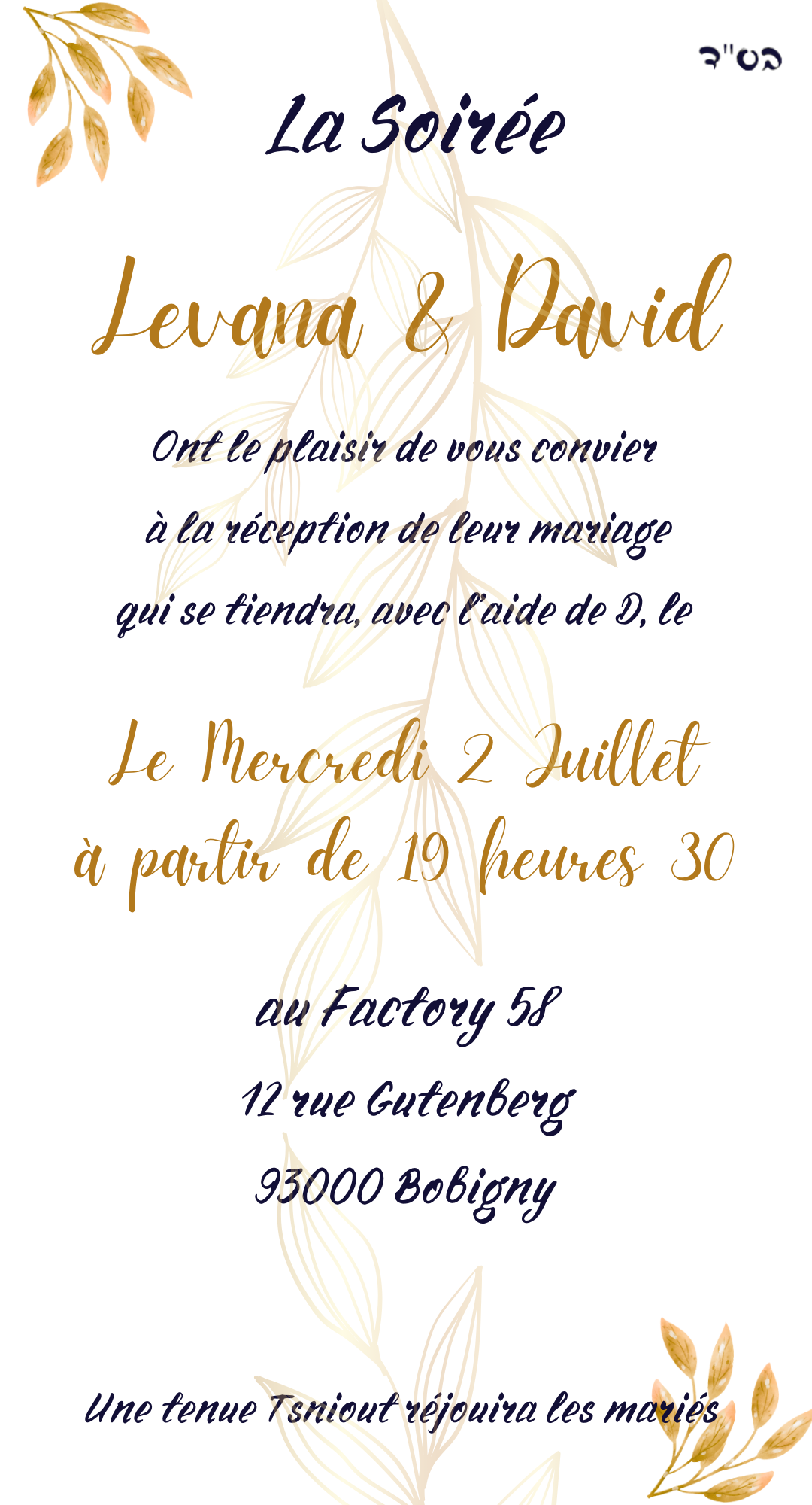 Notre carte est conçue pour une utilisation mobile.Pour en profiter pleinement, merci de l’ouvrir depuis votre téléphone.Levana & David